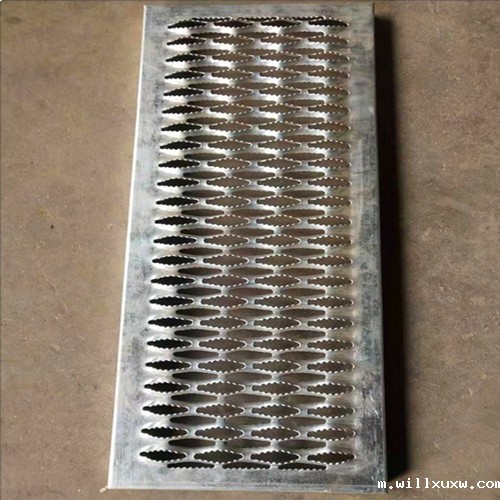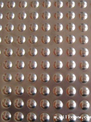 在平面的冲孔板上冲压出凸起的鼓包或者鱼眼睛样式的孔,在接触时增大了与板面的摩擦几率,它不像鳄鱼嘴锯齿孔给人的锋利的样子,防滑效果可能没有那种锯齿孔要好,但是满足一般防滑性要求不太高的平台场所还是可以的,经过处理防腐性良好。