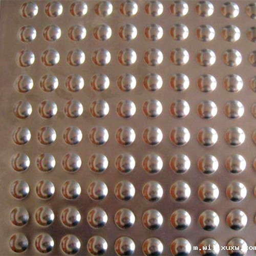 是在金属钢板上冲压并凸起的圆孔孔型,类似于鱼眼孔,此种类型冲孔板多用于平台、脚踏板使用,外形美观、防滑耐用,是防滑板类型中的一种。